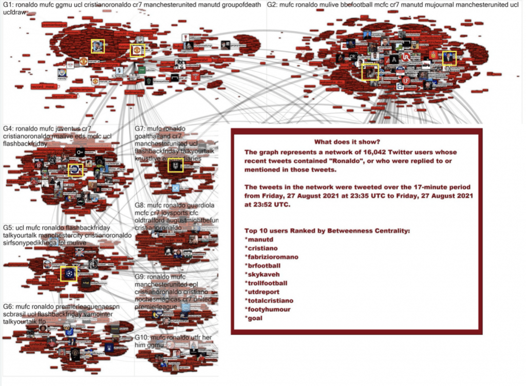 NodeXL – Social network Analysis of Ronaldo’s transfer, network on Twitter.