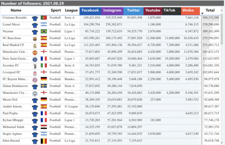 CR7, Ronaldo has returned to Manchester United. To any football fan, this is big news. The continued global growth of smartphones and social media fans the flames of this news around the world. For those that don’t know – CR7 is not only the most followed sports person on social media in the world, but also outstrips all other sporting clubs and brands. He has accumulated a colossal 588,372.589 followers across Facebook, Instagram, Twitter, YouTube and Chinese platform Weibo. Footballers Messi and Neymar are second and third respectively, followed by Barcelona, Real Madrid, Manchester United and Messi’s new club Paris Saint Germain.
